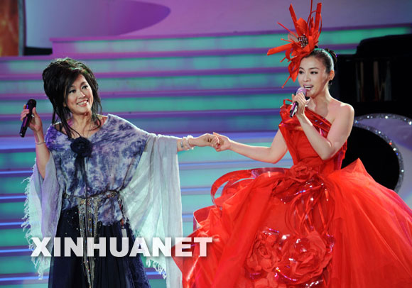 10月31日,陈思思(右)与歌手齐豫在演唱会上表演。新华社发(吴景腾 摄)