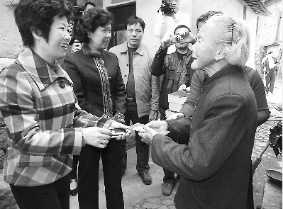 图为游婉玲等到103岁台属吴松家送去慰问金及生活用品。温欣 吴育清 戴俊祥 摄