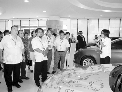 图为24日,台湾侨界人士听取上海荣威汽车的生产情况。记者 陈晓星摄