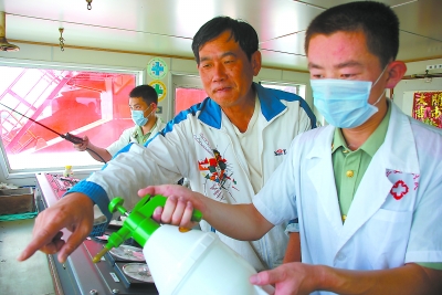 29日,福建海警二支队开展“防疫送药上台轮”活动,为台轮消毒防疫、为台胞义诊送药,受到台胞船员们的好评。 陈旻 李晨 摄