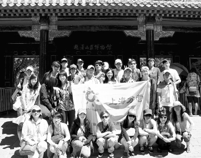 台胞青年千人夏令营二团一队学生在承德避暑山庄前合影。王馨恬 摄
