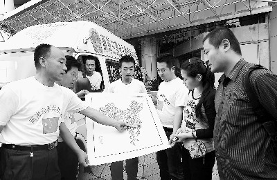 福建和台湾是行动中安排的最后两个省份。去年底,他们已从浙江进入闽北县市。今年6月,他们终于踏上了宝岛台湾,进行了8天的活动。“我们专门设计了一幅刺绣剪纸作品。由56朵鲜花和21只鸽子组成的中国地图上,这边站着一位母亲,那边站着一个孩子,母亲伸手迎接孩子,寓意是世界只有一个中国,56个民族56朵花,21世纪祖国大陆和台湾共同期盼团圆。”回忆宝岛行,乔继峰饱含深情。