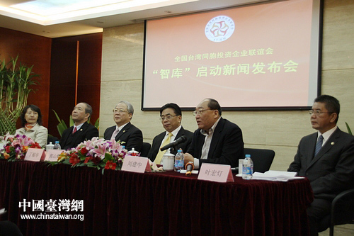 中国台湾网11月5日北京消息 今天上午,全国台湾同胞投资企业联谊会(台企联)“智库”在北京正式宣布启动。国台办协调局局长刘建中、经济局处长于红,台企联会长郭山辉、常务副会长兼秘书长何世忠、常务副会长兼“智库”召集人叶宏灯等出席了新闻发布会。