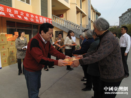 中国台湾网11月17日南京消息 日前,在南京市台办、溧水县台办组织下,南京市台湾同胞投资企业协会、南京一品极商贸有限公司向溧水县永阳镇、石湫镇分别捐赠了价值6万元和2万元的台湾特色食品。