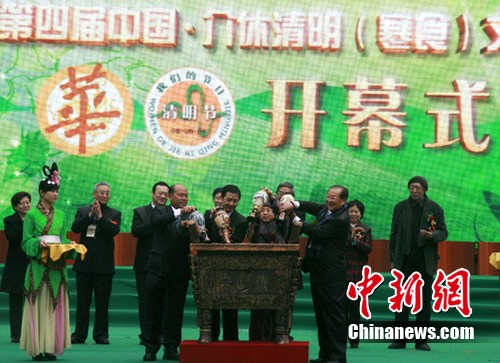 第九届海峡两岸中华传统文化与现代化研讨会暨第四届中国·介休清明(寒食)文化节于4月1日在山西省介休市绵山风景区开幕。程涛 摄