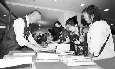 台湾民众纷纷来到巡展现场查询族谱,寻找他们在大陆的根。黄颂摄