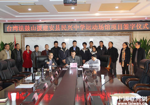 台湾法鼓山慈善基金会援建安县民兴中学运动场馆项目签字仪式。