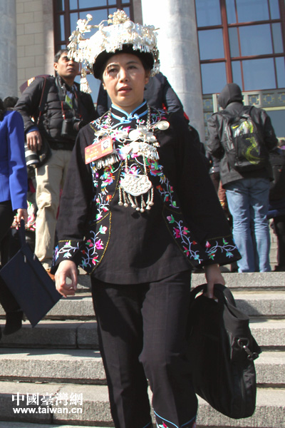 来自贵州团的布依族代表王菁女士。(中国台湾网记者 高斯斯 摄)