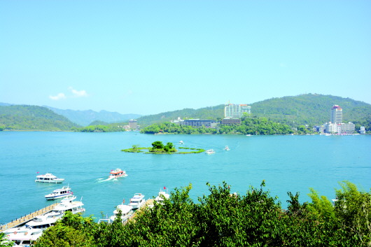 日月潭湖水如夏日的蓝天那般蓝得温吞。
