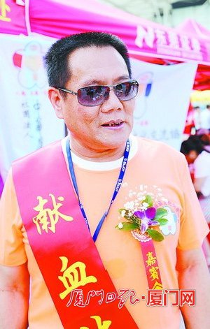 已献血39年的台湾献血达人刘昭和昨日在厦完成了第500次献血,他说,两岸同胞血浓于水,能在祖国大陆无偿献血意义非凡。