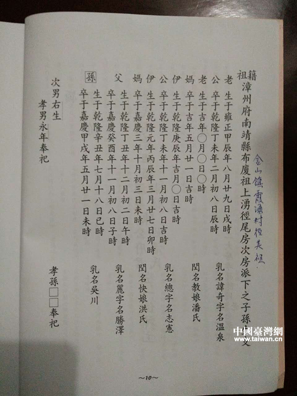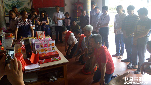 中国台湾网6月14日厦门消息 (记者 芜同)日前,从台湾宜兰县赴厦门参加海峡论坛的陈世埙一行四人,跪在漳州南靖县金山镇霞涌村径尾陈氏宗祠里,面对着祖宗牌位流下了眼泪。他们终于找到了自己家族的祖籍地,实现了几代先人的期盼和嘱托。