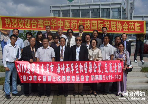 台湾中华中医药生技国际发展协会考察团一行到达辽宁本溪环仁好护士药业有限公司(图片来源:本溪市台办)