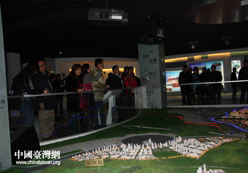 台湾主流媒体记者团观看大连长兴岛规划图(图片来源:大连市台办)