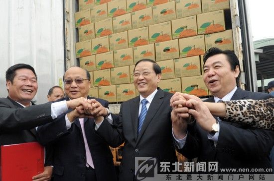 陈政高省长(右二)见证台中特色农产品封箱后启运辽宁