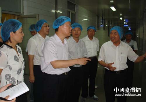 大成食品(亚洲)有限公司执行董事陈福狮为辽宁省铁岭市委副书记、代市长吴野松一行介绍生产情况(图片来源:铁岭市台办)