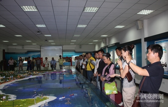 东戴河新区管委会工作人员就沙盘向台湾客商介绍东戴河新区基本情况。(图片来源:葫芦岛市台办)