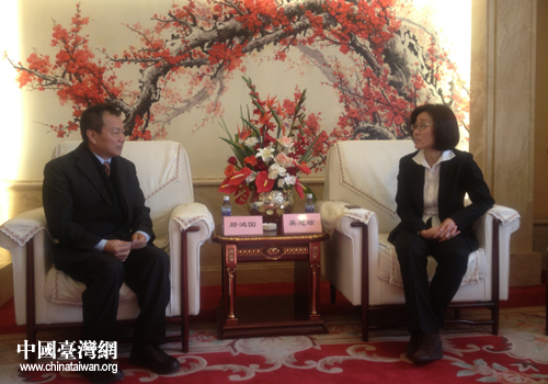 吴忠琼会见台塑集团南亚公司副总经理郑鸿国。(图片来源:鞍山市台办)