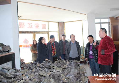 台湾客人参观本溪市辽砚生产企业。(图片来源:本溪市台办)