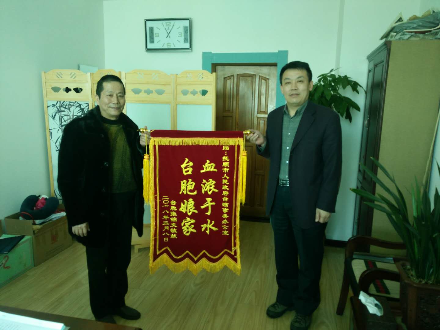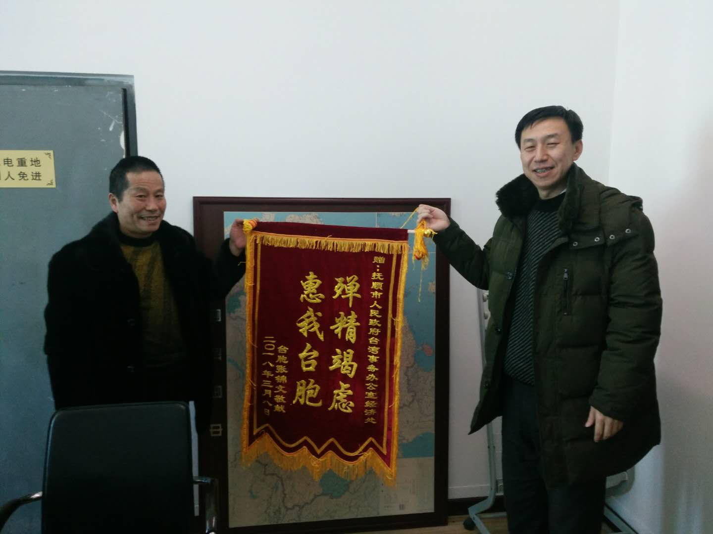 中国台湾网3月14日抚顺讯 近日,台商张锦文怀着激动的心情来到了抚顺市台办,为抚顺市台办赠送了两面锦旗,以表诚挚的谢意。