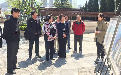 5月3日至4日,台中海峡交流协会理事长蔡玲兰一行6人赴大连参访交流。图为参访东港商务区(左三蔡玲兰,左一李东,左四赵彤)。(辽宁省台办供图)