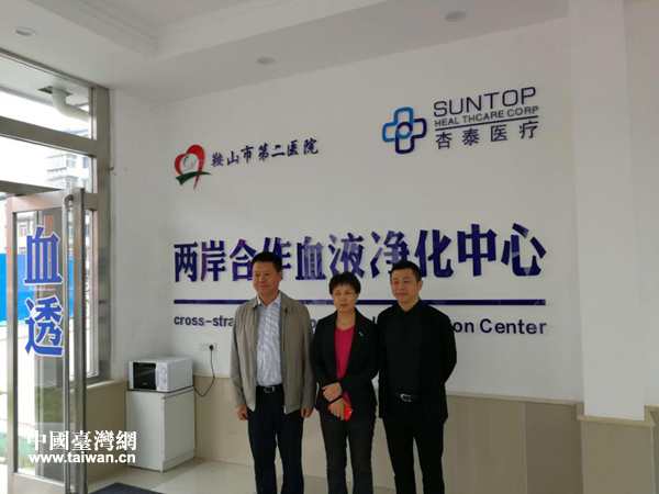 中台湾网5月17日鞍山讯 11日,鞍山市台办主任朱卫红、副主任孙宏林一行到鞍山市第二人民医院,实地调研与台资企业杏泰医疗设备(上海)有限公司合作实施的“两岸合作血液净化中心”项目运营及临床治疗情况。