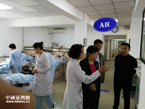 鞍山市台办主任朱卫红(右三)了解临床治疗情况。(图片来源:辽宁省台办)