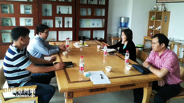 在冠品木器座谈。(图片来源:沈阳市台办)