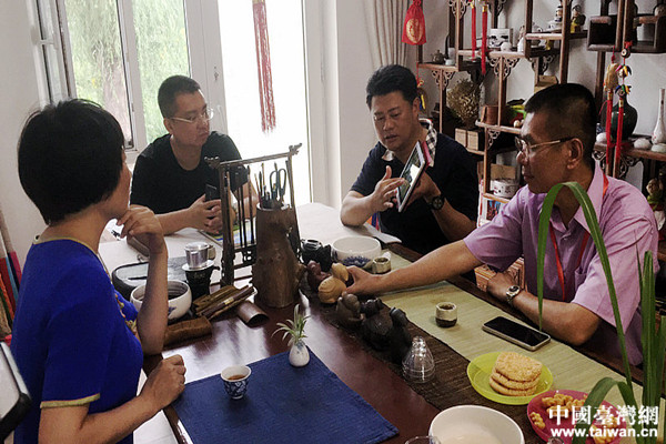 与村民代表探讨交流。(图片来源:辽宁台办)