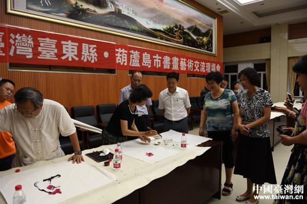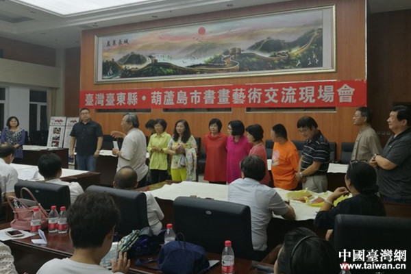 2018年8月14日,辽宁省葫芦岛市台办、市文联、市台联、市民革联合举办了“台湾台东县·葫芦岛市书画艺术交流现场会”。(中国台湾网辽宁台办通讯员 周大伟)
