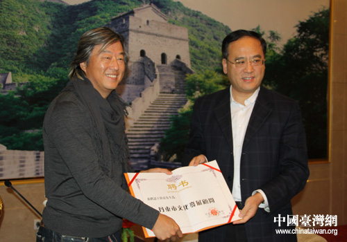 中国台湾网11月17日丹东消息 日前,丹东市代市长石光在丹东宾馆会见了台湾金星娱乐事业有限公司总经理王伟忠、台湾海悦广告股份有限公司董事长黄希文等台湾客人,并聘请王伟忠、黄希文为“丹东市文化发展顾问”,向二人颁发了聘书。