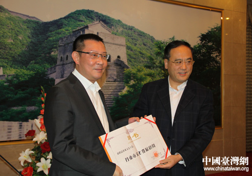 黄希文先生(左)受聘(图片来源:丹东市台办)