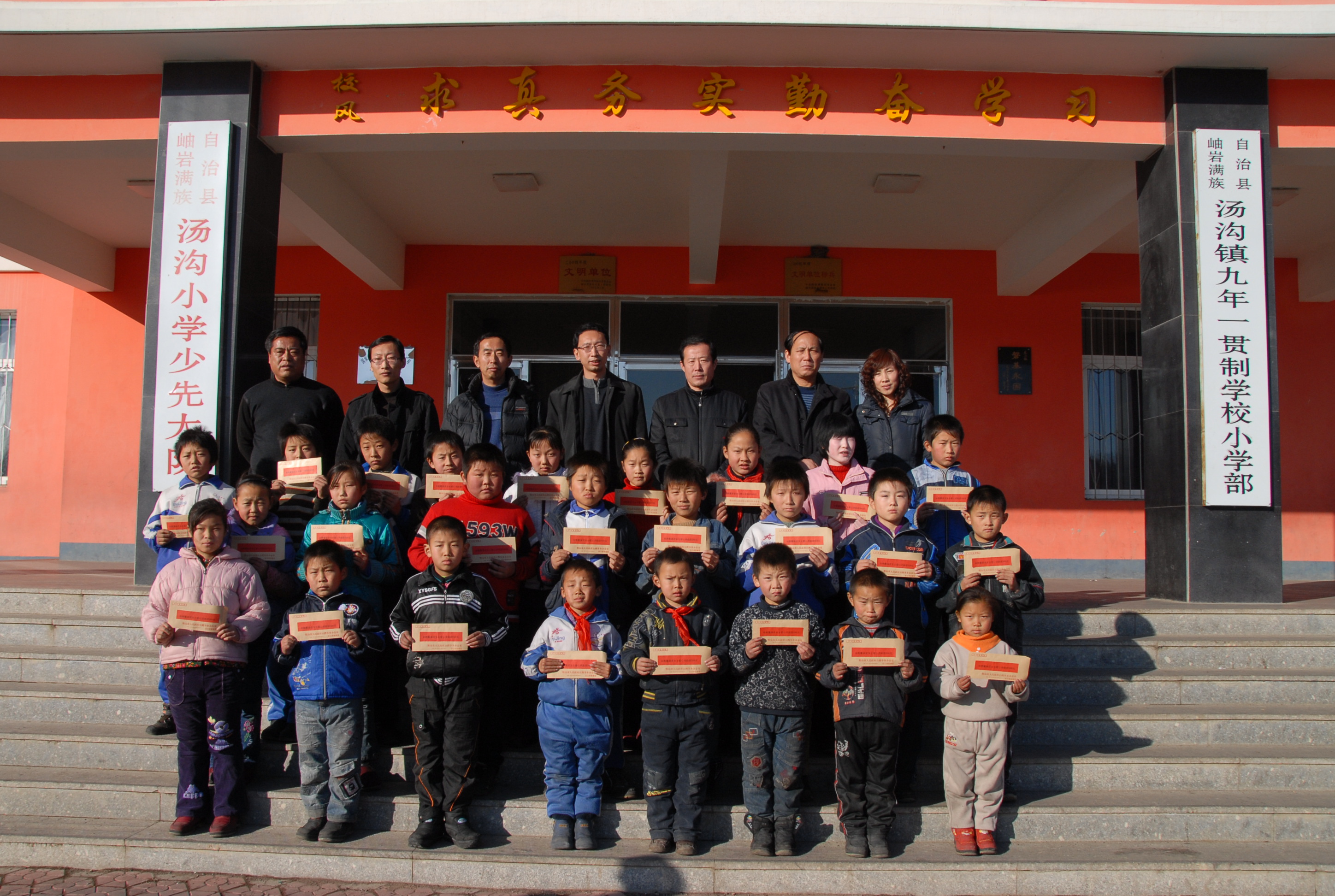 12月18日,鞍山市台办副主任廖明伟带着台胞董淑贞女士的爱心资助款3万元到岫岩县韭菜乡小学、岭沟中心小学、汤沟镇小学,将董淑贞女士的2008年爱心资助款发放到每名受资助的困难小学生手中。岫岩县台办主任沈延义、岫岩县教育局局长王胜利陪同发放。