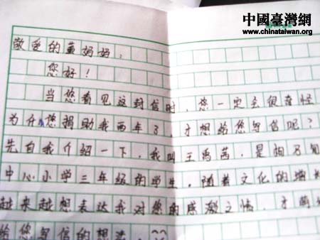台商董淑贞向贫困生献爱心 孩子写下感谢信