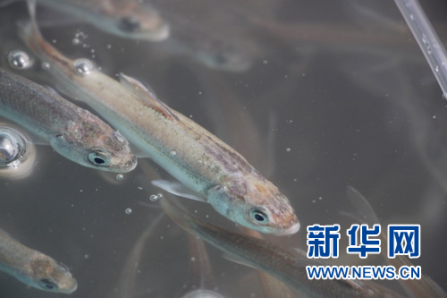 这是青海湖裸鲤鱼苗(6月6日摄)。新华社记者 周喆 摄
