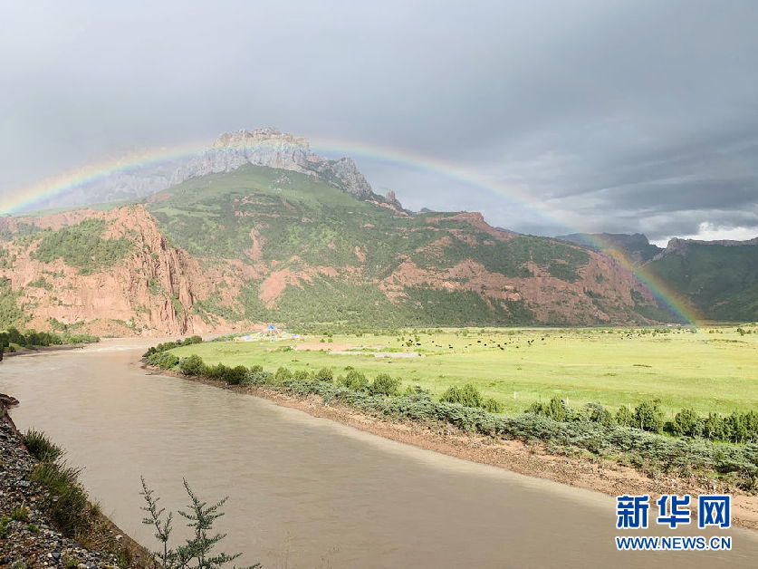 这是8月22日在昂赛大峡谷拍摄的彩虹。新华社记者 李琳海 摄