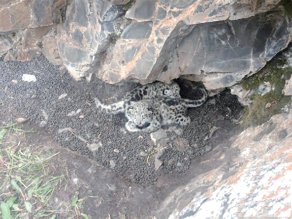 在青海省玉树州称多县尕朵乡拍摄到的雪豹幼崽。
