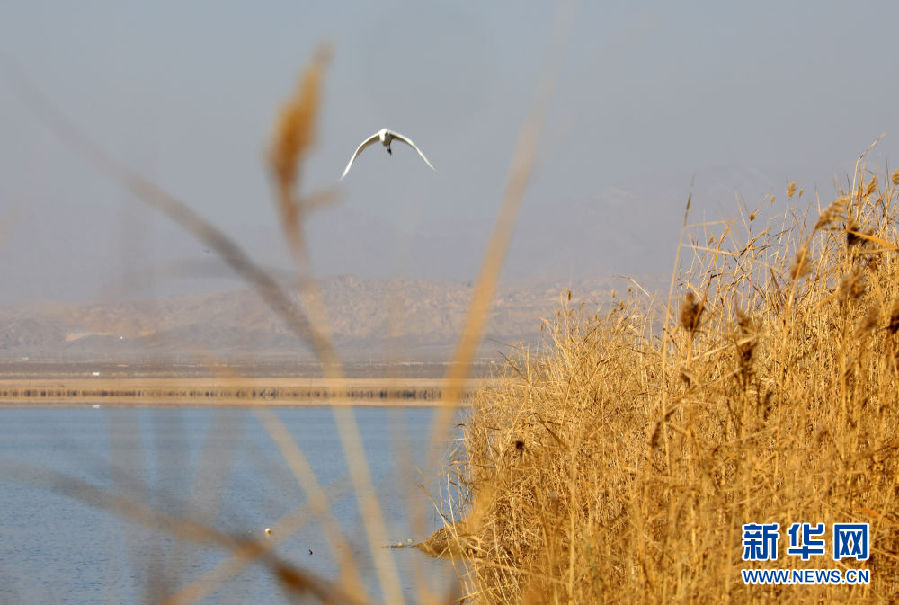 10月28日,一只水鸟飞过可鲁克湖。新华社记者 央秀达珍 摄
