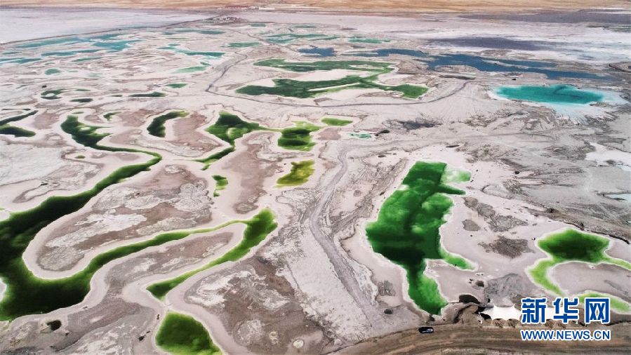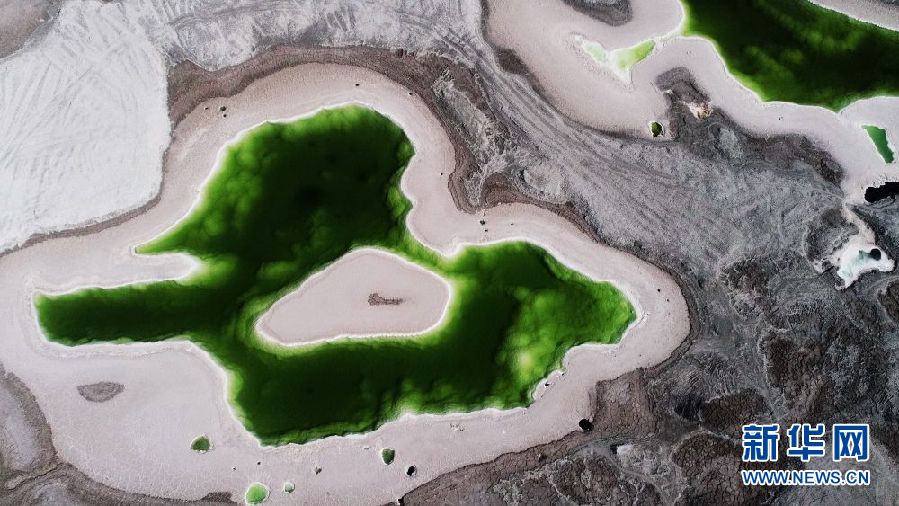 翡翠湖位于青海省海西蒙古族藏族自治州,由于湖底深浅不一、所含矿物质浓度不同,湖水呈现不同深度的绿色,宛若镶嵌在戈壁上的“绿宝石”。