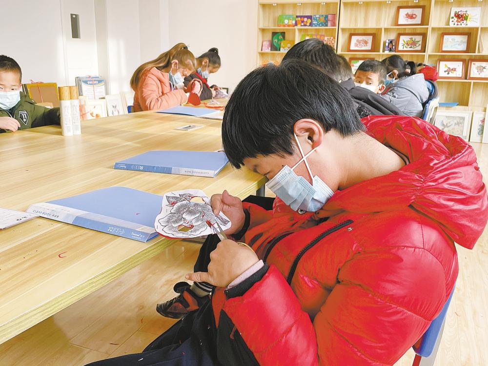 冬日里,午后的阳光洒进教室,在一圈圈的光晕下,孩子们正在老师的指导下学习剪纸,随着形状不一的纸屑飘落,手中上下翻飞的剪刀也停了下来。不一会儿,一个红彤彤的“春”字就出现在孩子们手里。