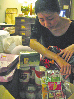 武红在整理在台湾买的各种“宝贝”