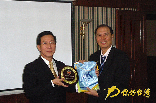 王克璋会长与姜志俊博士互赠礼品(你好台湾网 图)