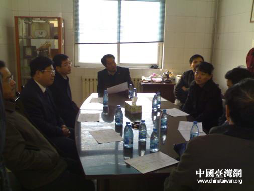 图为市环保局张利局长(右一)与台资企业人员座谈。图片来源:济南市台办