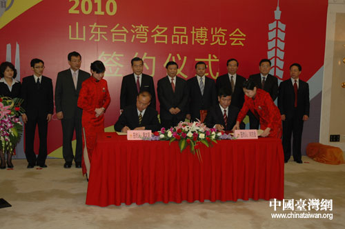 会见结束后,省贸促会与台北世贸中心举行了“山东台湾名品博览会”签约仪式。