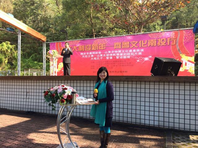 台湾民意代表、前南投市市长许淑华在致辞中对这次活动开展表示祝贺,非常感谢各位把这么棒的文化带到南投来,希望进一步推动南投与山东各方面文化交流与合作。