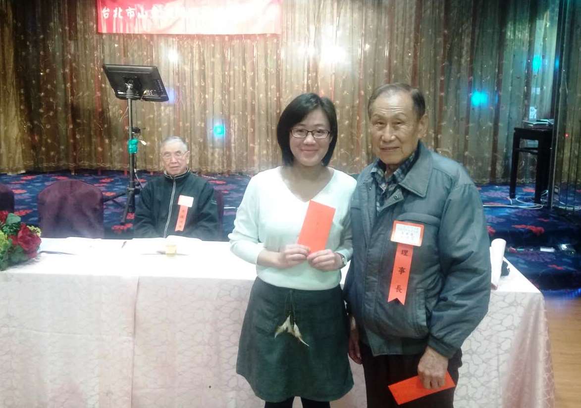 台北市山东莱阳同乡会理事长王守芳在致辞中,特别转达了山东省政府台办对在台同乡的问侯与祝福。同时,王理事长更期许在场的第二代能引进更多的第三代参加同乡会活动,让同乡会更年青化,进而能增强身为山东人的光荣。