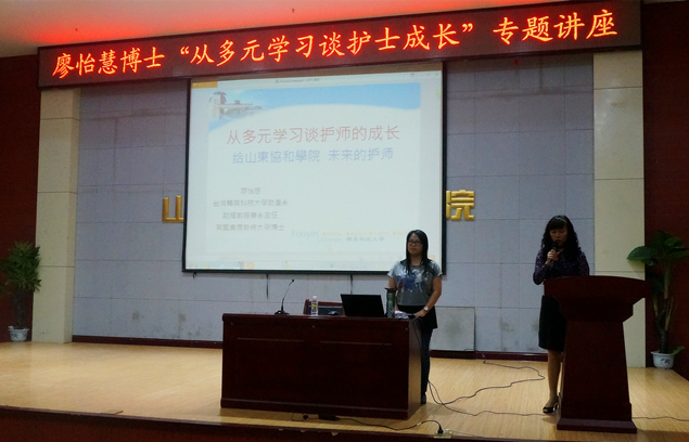 辅英科技大学助产系主任廖怡惠博士在学术报告厅为同学们做了题为“从多元学习谈护师成长”的学术讲座。廖博士还与学校教师分享了台湾护理与助产专业建设的发展趋势,并讲述了辅英科大助产专业的发展与课程设置概况以及在这方面取得的成就。讲座结束后,护理学院青年教师与廖博士进行了学术交流。