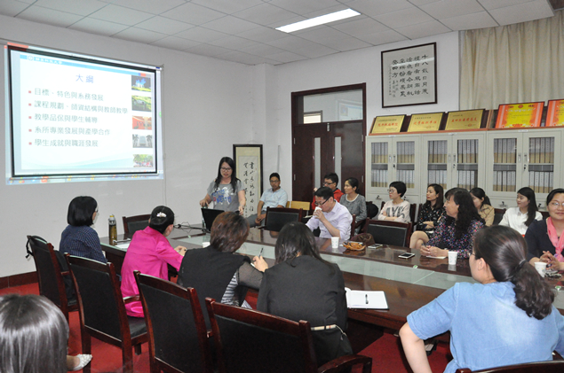 辅英科技大学幼保系主任吴柳娇博士带领学生一行在校交流期间,参观了人文教育学院的实训室,并进入班级进行随堂学习体验。不同的班级,不同的课程,不同的学习方式,台湾同学很认真地参与课程学习的每个环节,体验与台湾教学风格迥异的课堂学习。课堂上两岸学子踊跃发言,气氛十分活跃。在人文教育学院教研活动时间,吴博士为青年教师做报告并开展座谈。