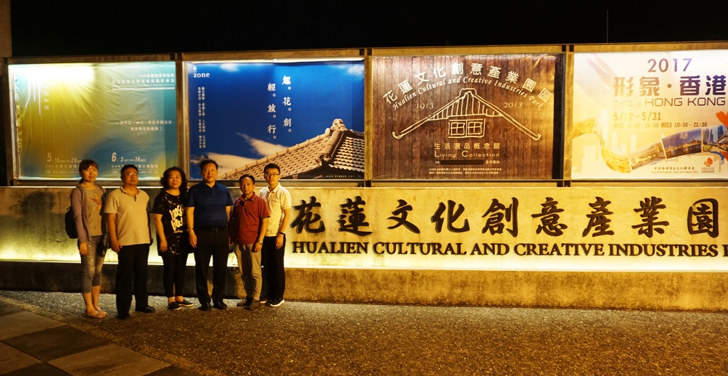 24日晚,交流团一行参观考察了花莲文化创意产业园区。花莲文化创意产业园区,占地3.3公顷,前身为花莲酒厂,停止营运后于2012年转型,有许多艺文空间、展览、表演、特色商品与餐厅。交流团详细考察了园区的运营情况,了解了园区的运营方式。交流团成员在考察后认为,台湾文创业比较发达,有很多好的经验值得借鉴。