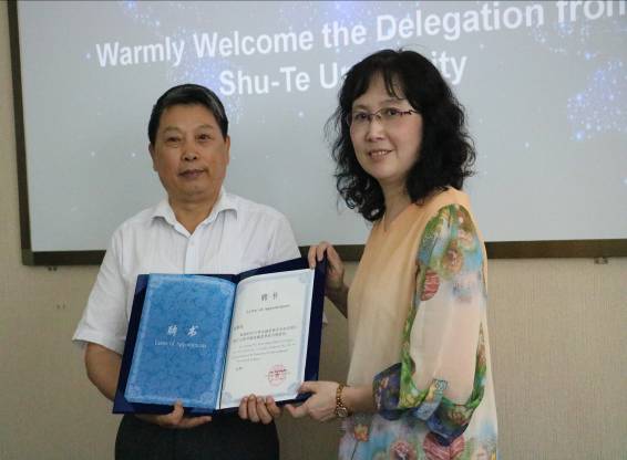 6月2日,台湾树德科技大学金融管理系主任吴如萍博士带领8名学生到山东外国语职业学院访问交流,学院副校长何集体及相关人员热情接待了来访客人。