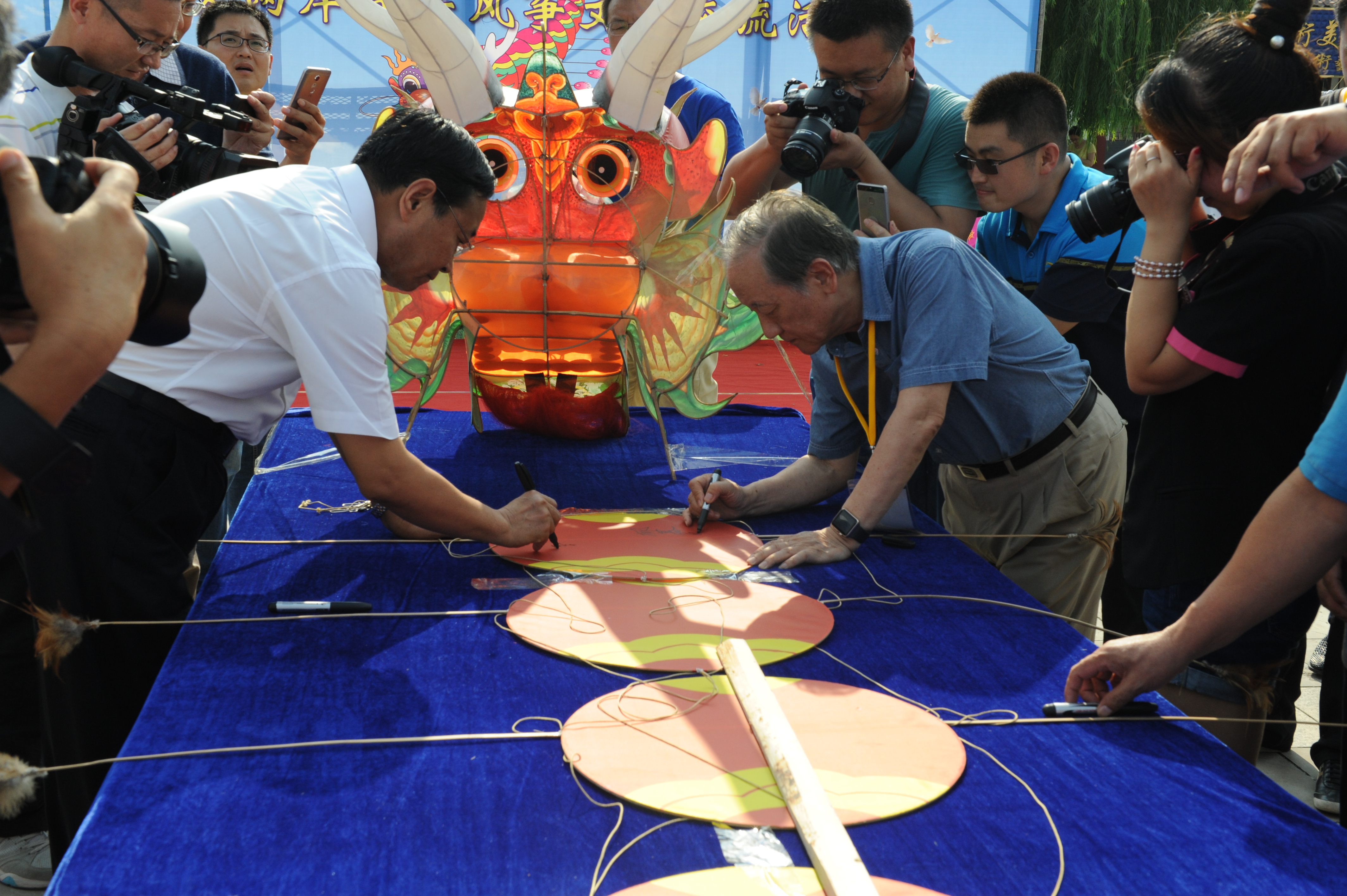 郁慕明与赵崇发共同为中华龙风筝点睛